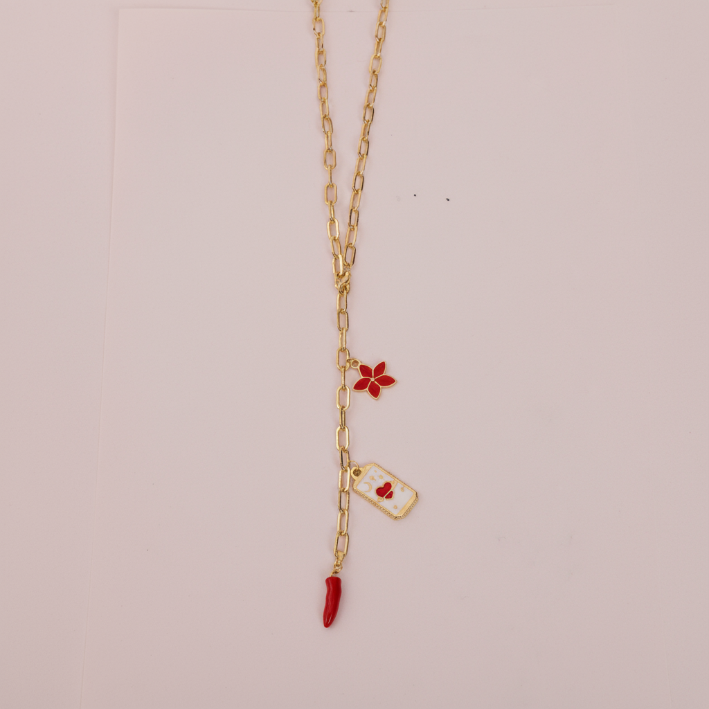 • Şıklığı ve anlamı bir arada sunan Charmlı Y Kolye, altın kaplama zinciri ve özenle yerleştirilmiş charm detaylarıyla hem günlük kullanımda hem de özel anlarda boyunda göz alıcı bir duruş sağlar. Y şeklindeki tasarım, kolyenin zarif hatlarını ön plana çıkarır ve boyun bölgesine estetik bir dokunuş ekler.