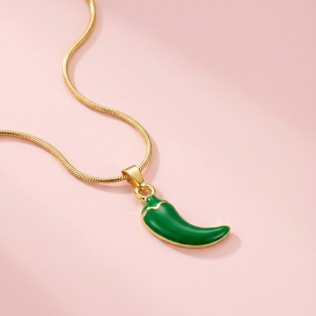 Bu zarif kolye, modern tasarım şıklığını ve eğlenceli sembolizmi bir araya getiriyor. Biber motifi, enerji, tutku ve eğlenceli tarzı simgelerken, kolyeye genç ve dinamik bir hava katıyor.