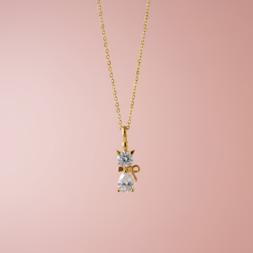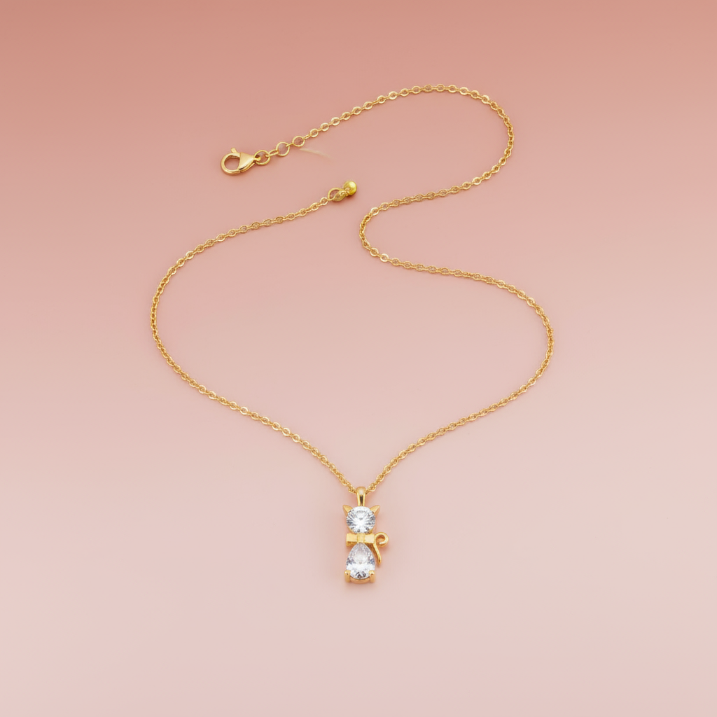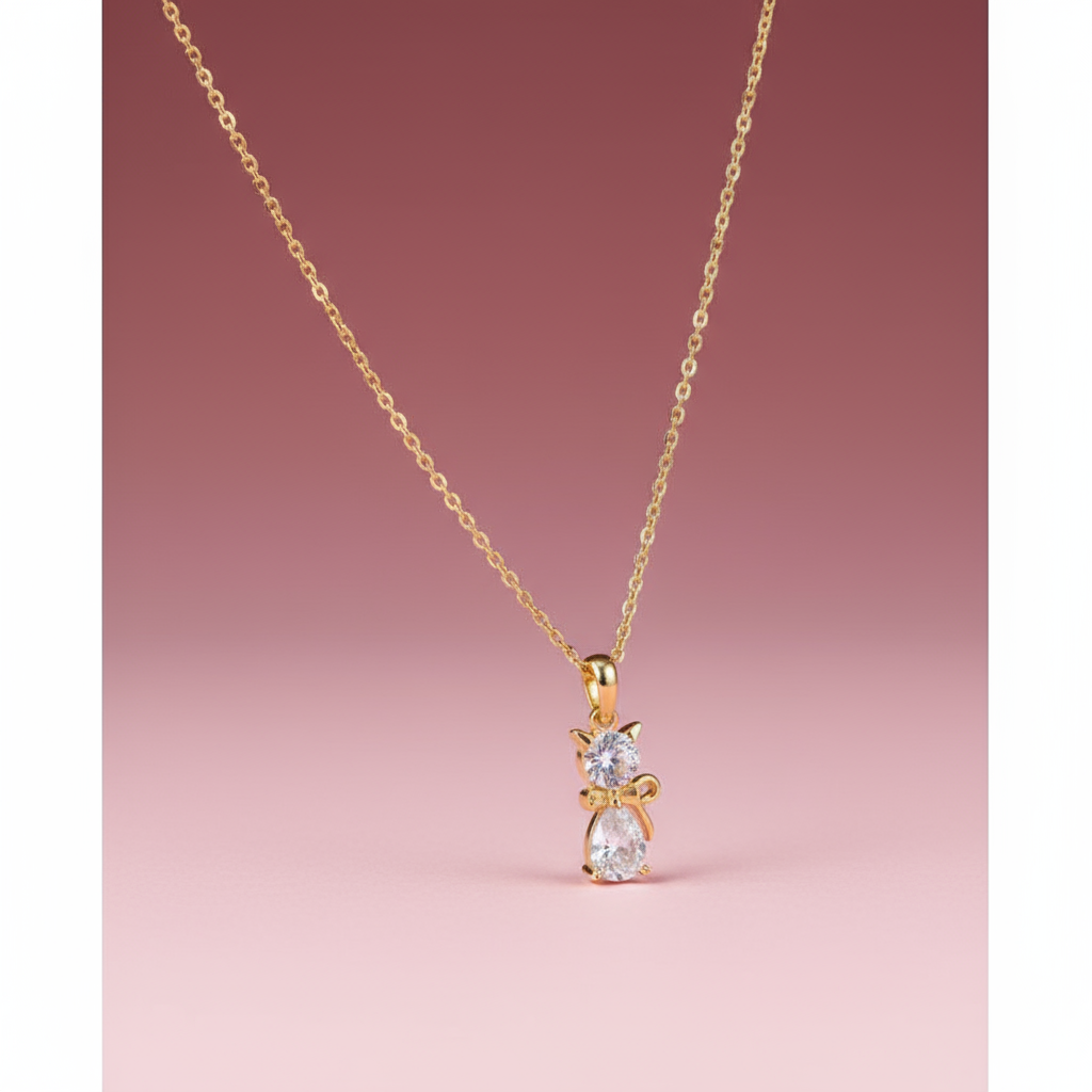 Zirkon Taşlı Kedi Kolye