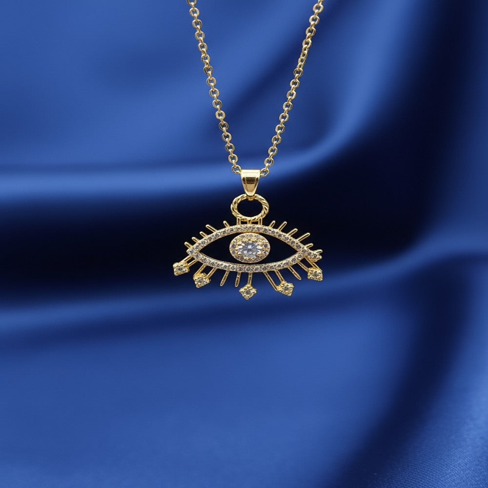 Zirkon Taşlı Altın Kaplama Göz Kolye – Şıklığın ve Koruyucu Enerjinin Simgesi