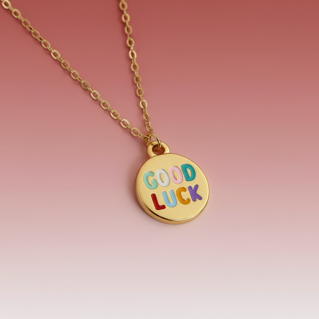 Pozitif enerji ve şansı temsil eden Good Luck Kolye, modern yazı formuyla hem minimal hem de anlamlı bir görünüm sunar. Şık hatlara sahip “Good Luck” yazısı, günlük stilinize hem zarif hem de motive edici bir dokunuş katar. Hafif yapısı ve parlak yüzeyiyle her gün keyifle kullanılabilecek bir aksesuardır.