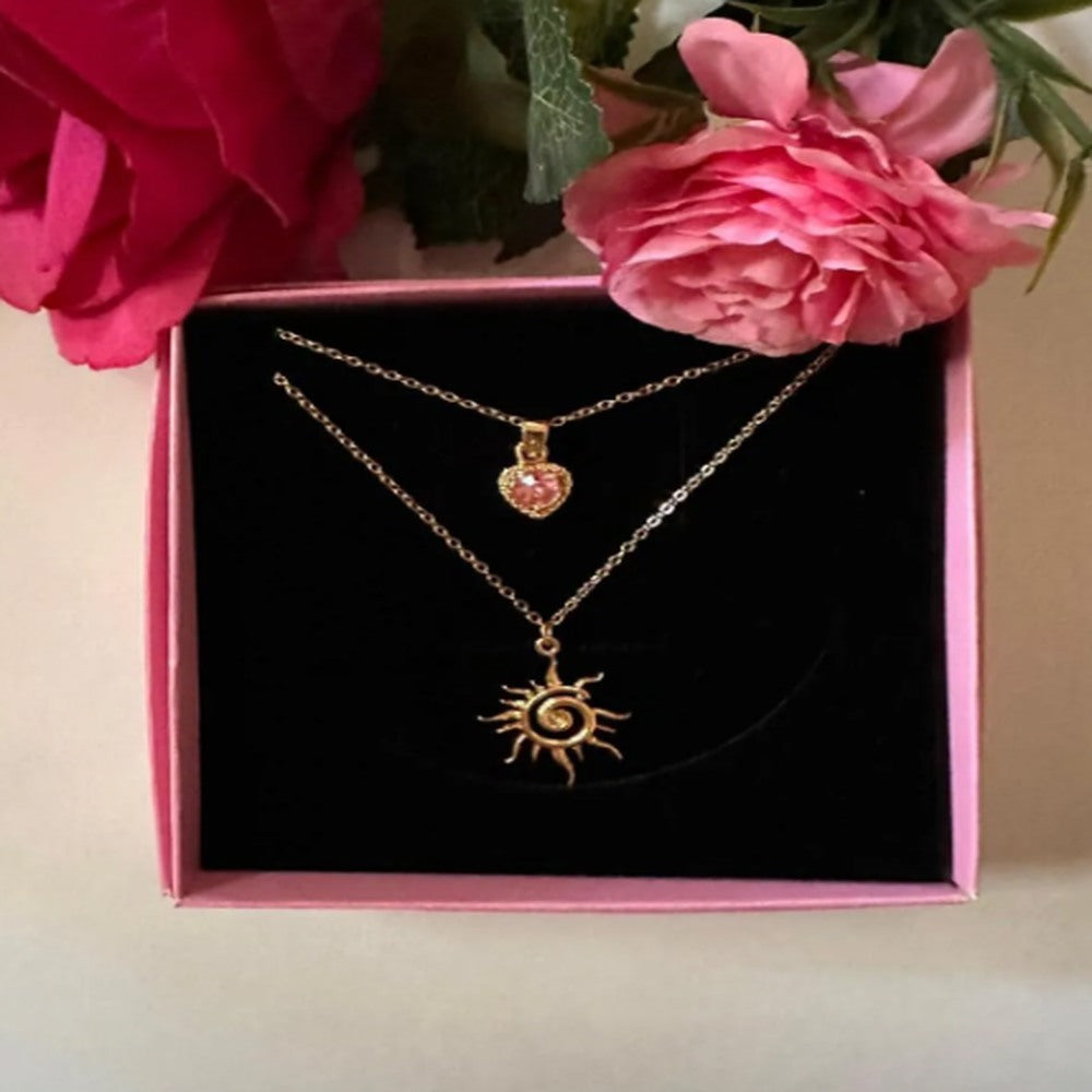 ☀️❤️ Güneş/Kalp İkili Kolye Seti ❤️☀️