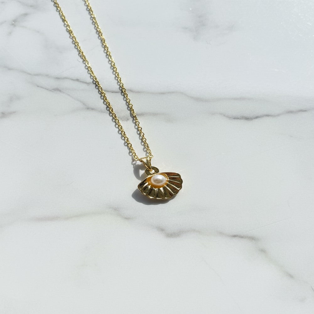 Altın kaplama zinciri ve ucundaki doğal inci detaylı deniz kabuğu ucu ile tasarlanan bu kolye, yazın tazeliğini ve denizin huzurunu tarzınıza taşır. Günlük kombinlerden özel davet stillerine kadar her görünüme sofistike bir dokunuş katar.