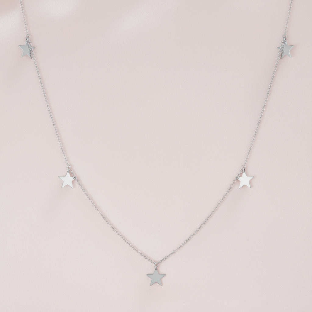 Zarif ve modern tasarımıyla öne çıkan 5 Yıldızlı Kolye, yıldızların parlak enerjisini şık bir formda sunar. Beş adet yıldız detayı, hem minimal hem de dikkat çekici bir görünüm oluşturur. Günlük kombinden özel gün stiline kadar her tarza uyum sağlayan bu kolye, bijüteri kategorisinde trend bir aksesuardır.