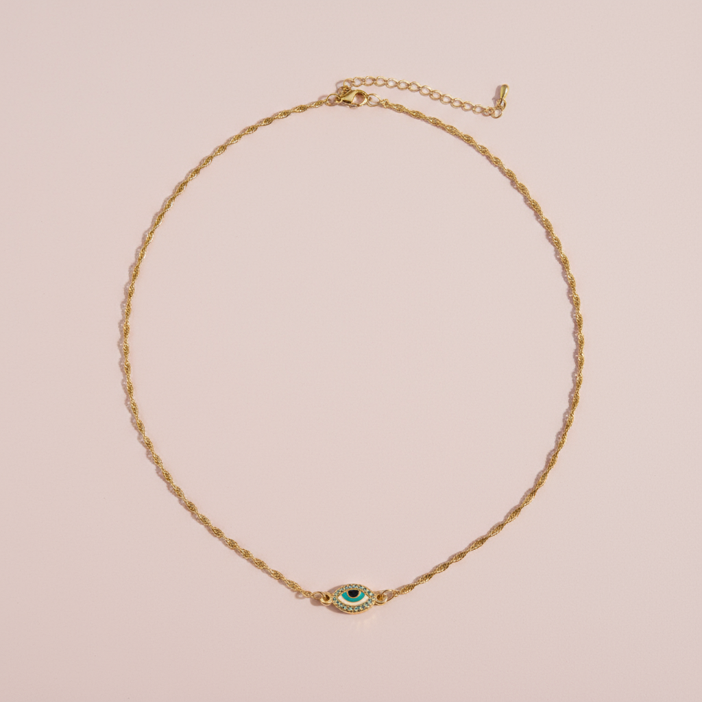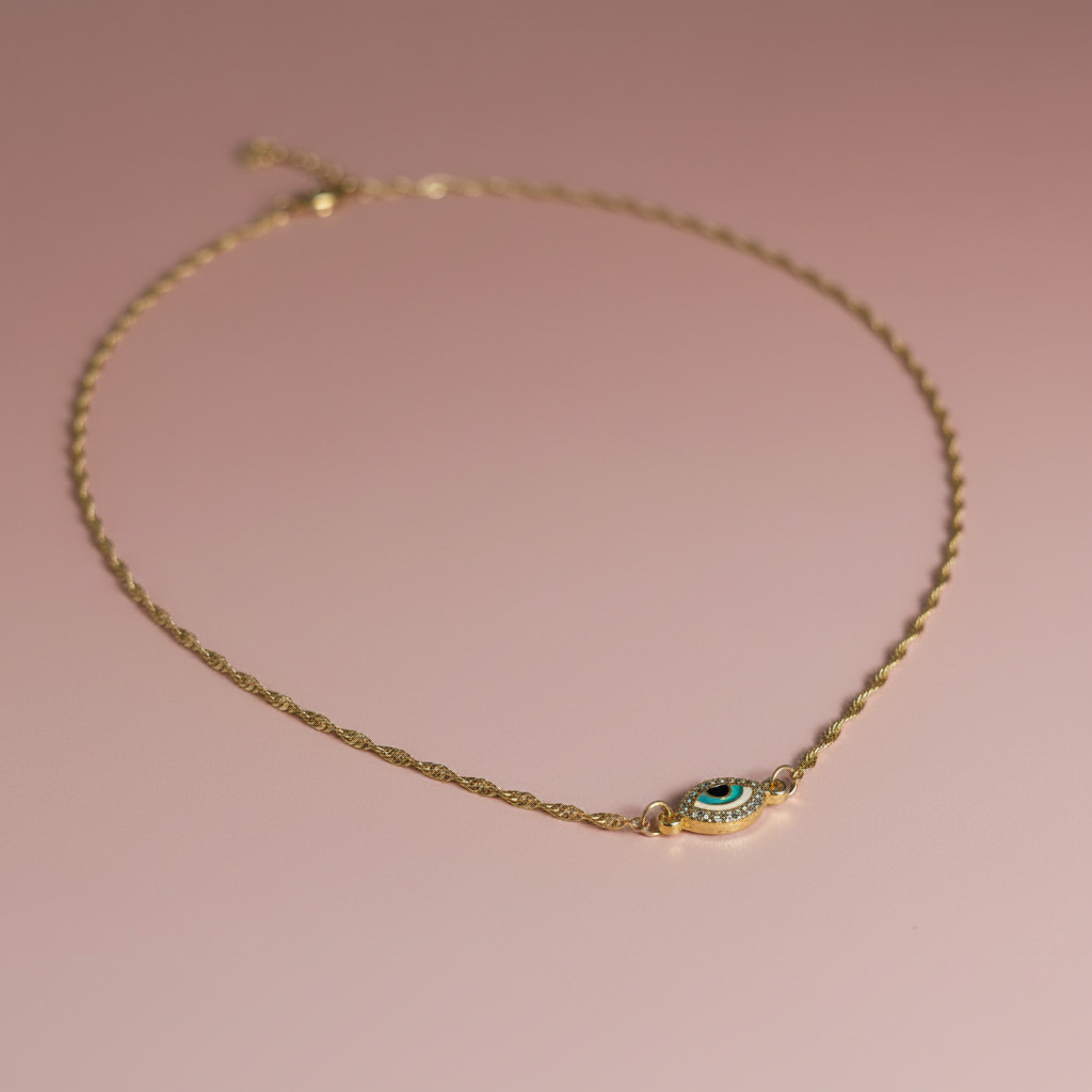Göz figürü; koruma, pozitif enerji ve sezgiyi simgeler. Hafif ve konforlu yapısı gün boyu rahat kullanım sağlar. Minimal ve şık tasarımı her kombine uyum sağlar ve boyunda estetik bir duruş oluşturur. Hem modern hem de klasik stillerle uyumlu olan bu tasarım, kendiniz veya sevdikleriniz için özel ve anlamlı bir hediye alternatifi sunar.