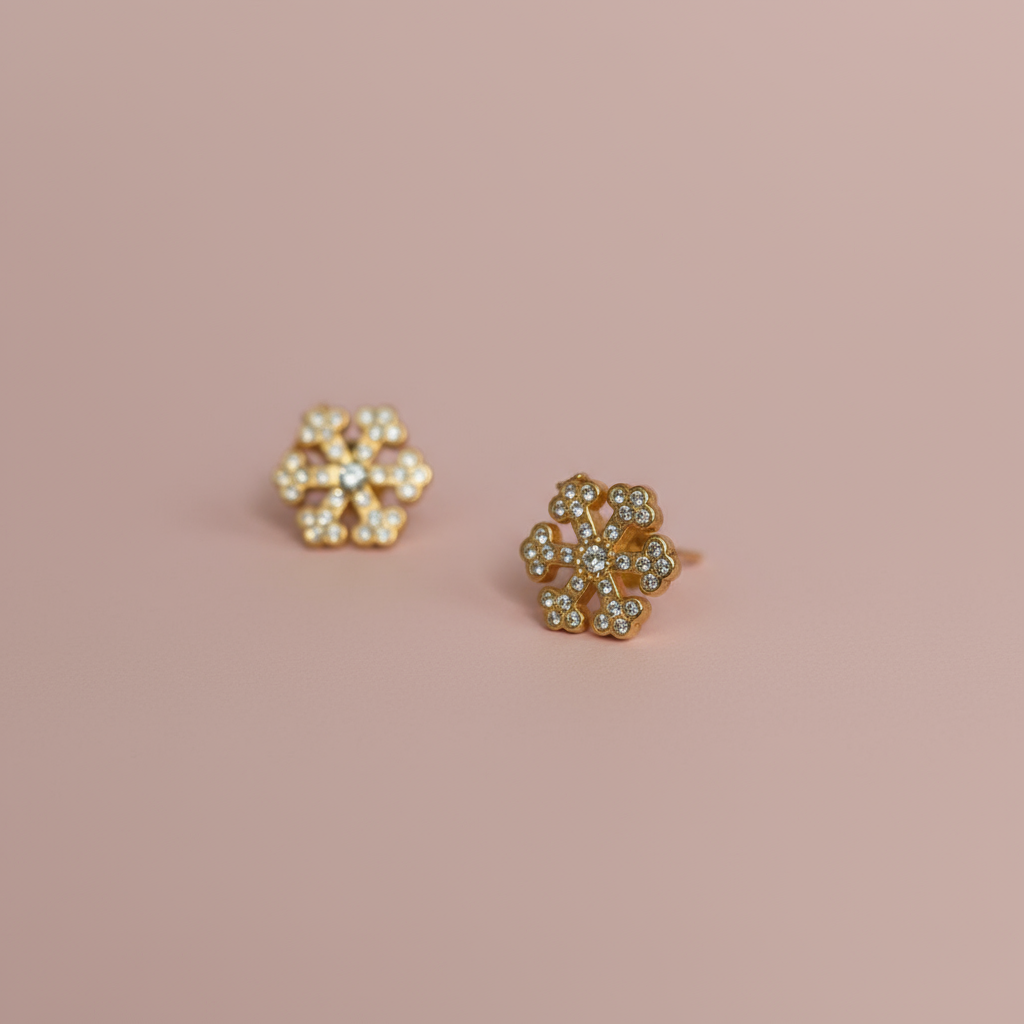 Kışın büyüsünü stilinize taşımak isteyenler için tasarlanan Kar Tanesi Küpe, altın kaplama yüzeyi ve özenle işlenmiş kar tanesi detayıyla hem günlük kullanımda hem de özel davetlerde şık bir görünüm sunar. Minimalist ve parlak tasarımı, her kombine sofistike bir dokunuş ekler.