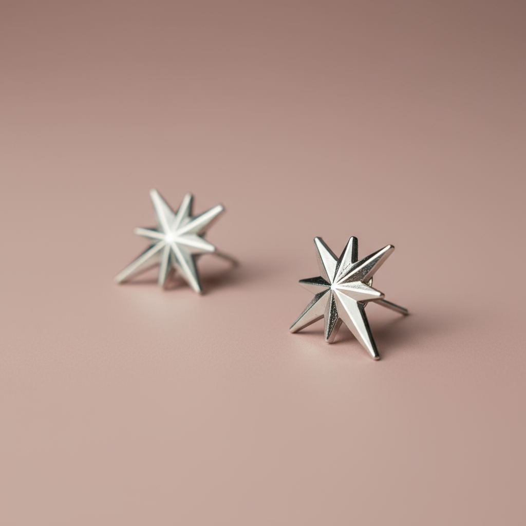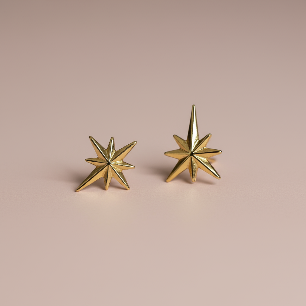 Kutup yıldızı figürü, yol gösterici, ilham verici ve pozitif enerji sembolü olarak öne çıkar. Hafif ve konforlu yapısı sayesinde gün boyu rahat kullanım sağlar ve stilinize sofistike bir detay katar. Modern ve klasik stillerle uyumlu olan bu küpe, hem kendiniz hem de sevdikleriniz için anlamlı bir hediye alternatifi sunar.