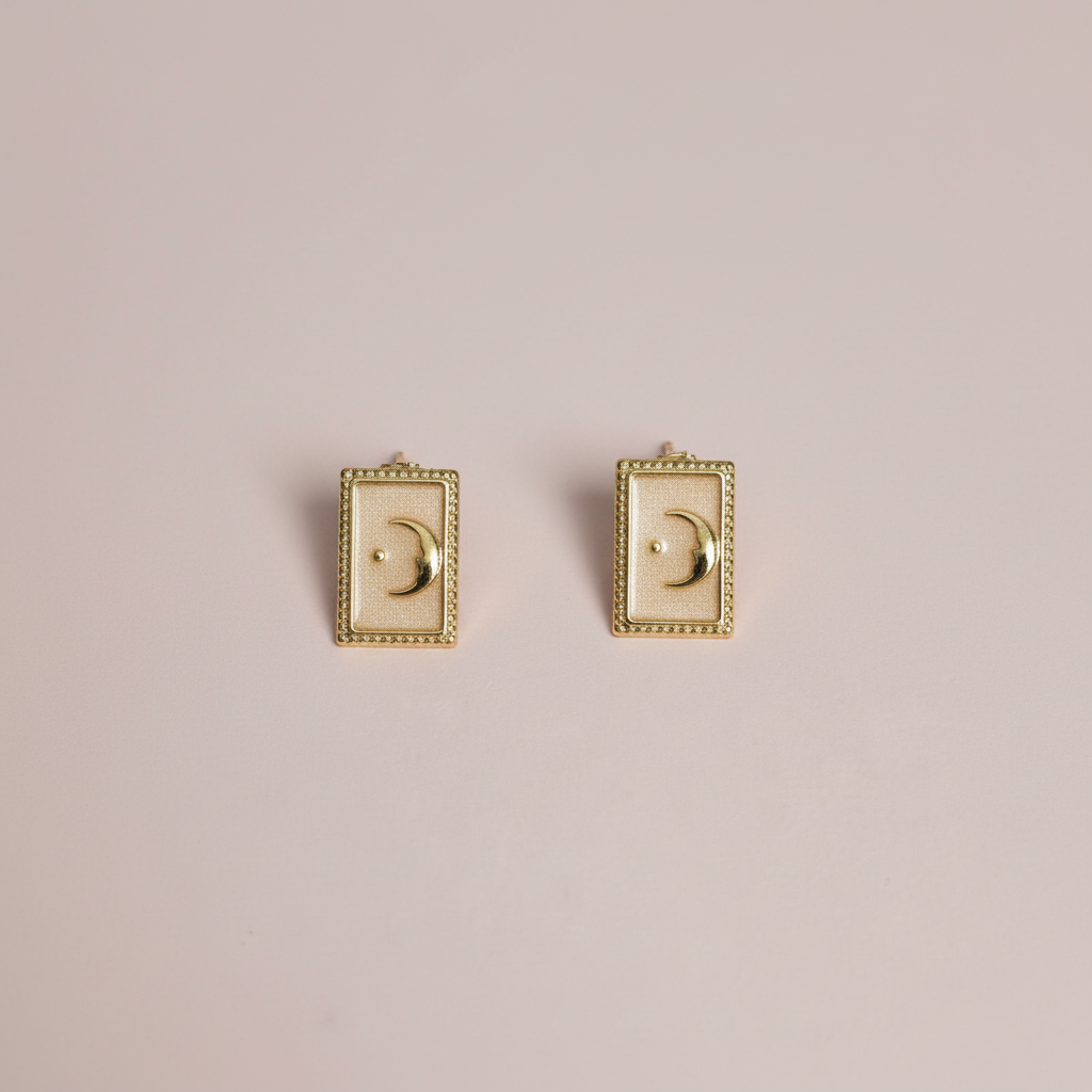 Minimalist ve anlamlı bir aksesuara sahip olmak isteyenler için tasarlanan Mineli Ay Plaka Küpe, altın kaplama yüzeyi ve mineli ay detayıyla hem günlük kullanımda hem de özel anlarda şık bir görünüm sunar. Plaka tasarımı modern bir çizgi katarken, ay figürü zarif ve estetik bir dokunuş sağlar.