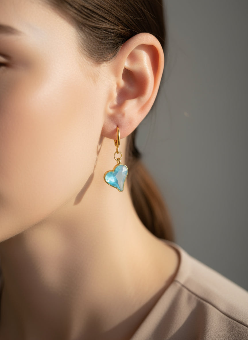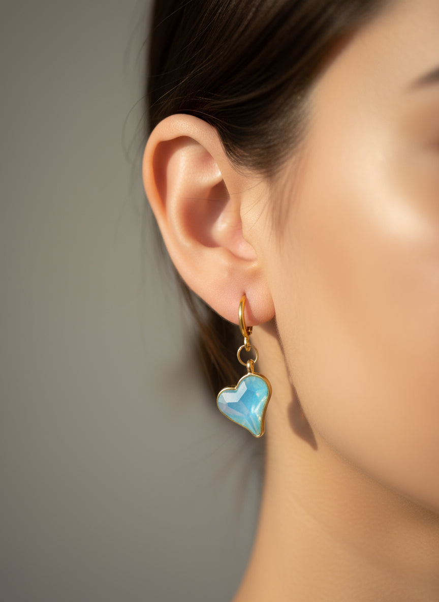 Minimal Mavi Kalp Küpe