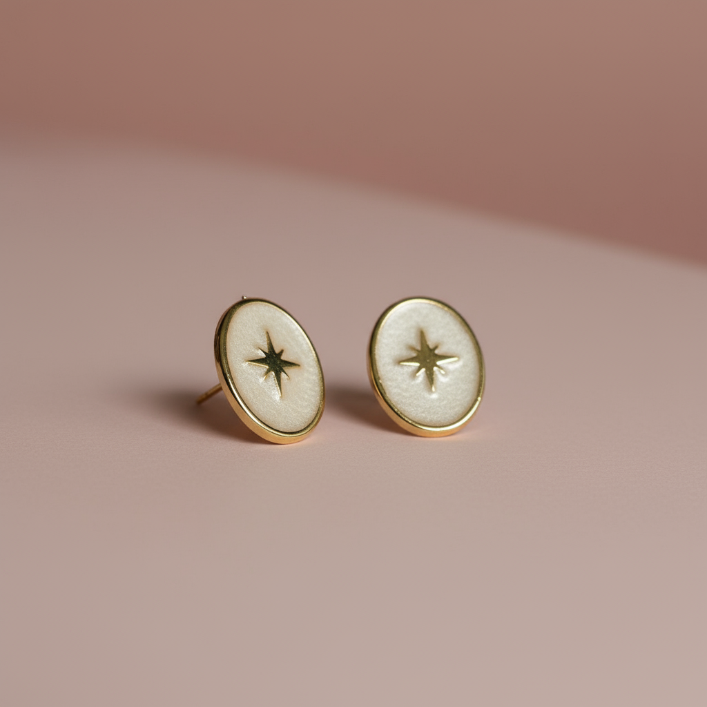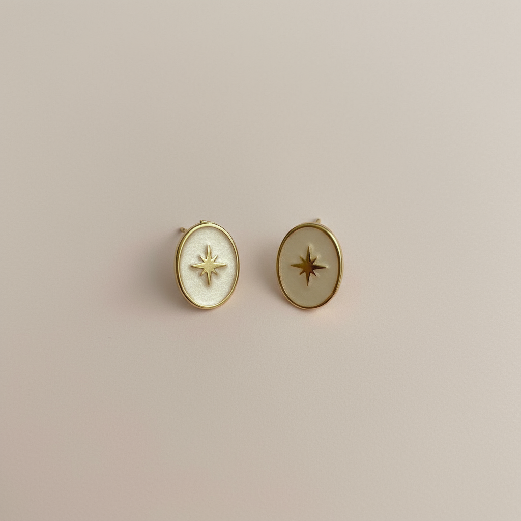 Gökyüzünün rehberliğini stilinize taşımak isteyenler için tasarlanan Oval Mineli Kutup Yıldızı Küpe, altın kaplama yüzeyi ve özenle işlenmiş mineli yıldız detayıyla hem günlük kombinlerde hem de özel davetlerde şık bir görünüm sunar. Oval tasarımı, minimalist ve zarif bir dokunuş ekleyerek her kombine uyum sağlar.