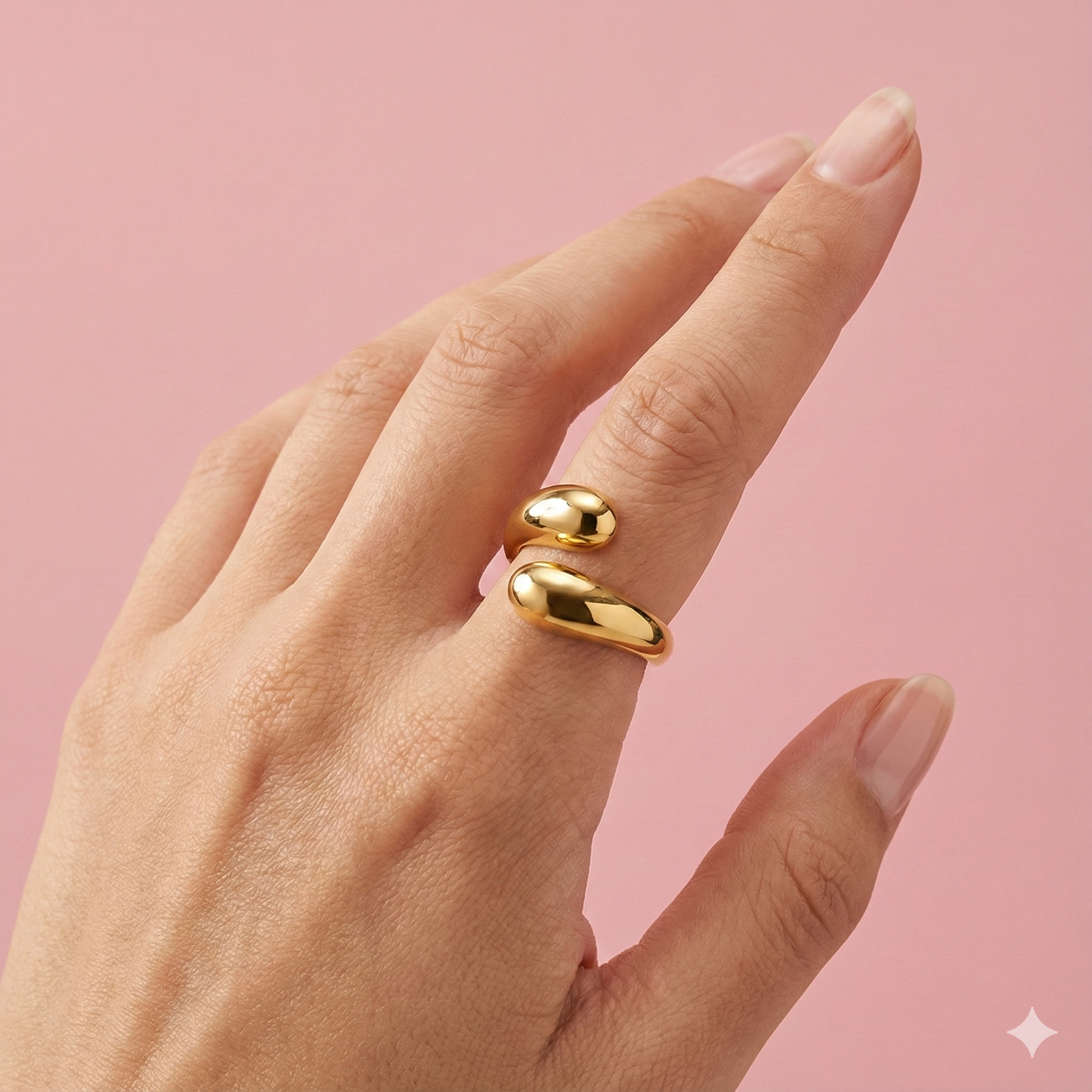 Zarif tasarımı ve modern detaylarıyla öne çıkan bu bijuteri yüzük, günlük şıklığınızı tamamlamak için özel olarak tasarlanmıştır. Hafif yapısı sayesinde gün boyu konforlu bir kullanım sunarken, parlak kaplamasıyla stilinize şık bir dokunuş katar. Günlük kombinlerden özel davetlere kadar geniş bir kullanım alanına sahiptir.