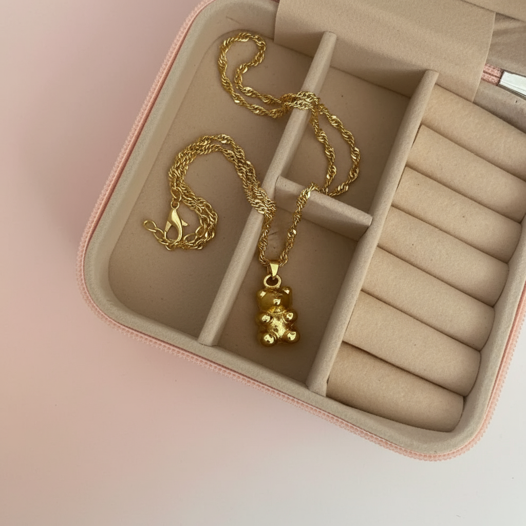 Sevimli, zarif ve modern tasarımıyla dikkat çeken Ayıcık Kolye, hem eğlenceli hem de şık bir aksesuar arayanlar için harika bir tercih. Ayıcık figürü; masumiyet, sevgi ve pozitif enerjiyi temsil eder. Günlük kullanımda minimal bir şıklık sunarken aynı zamanda tarzınıza tatlı bir dokunuş ekler.