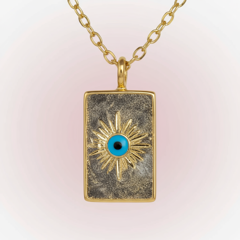 Mistik ve modern tasarımın bir araya geldiği Göz Plaka Kolye, plaka formu üzerindeki göz figürüyle hem şık hem de sembolik bir görünüm sunar. Düz ve parlak yüzeyi sayesinde minimal bir duruşa sahip olan model, kötü enerjiden korunmayı temsil eden göz motifiyle günlük stile anlamlı bir dokunuş katar. Hem tek başına hem de katmanlı kullanımda dikkat çeken zarif bir parçadır.