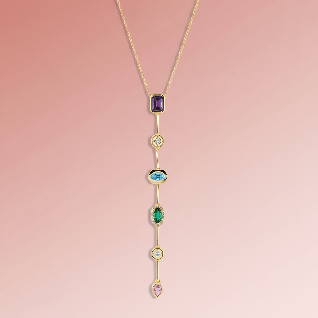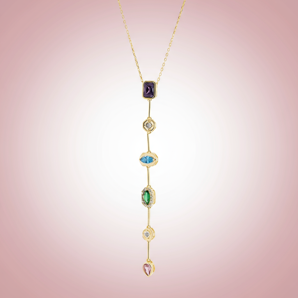 Bu zarif Y-kolye, modern tasarım şıklığını ve derin anlamı bir araya getiriyor.
