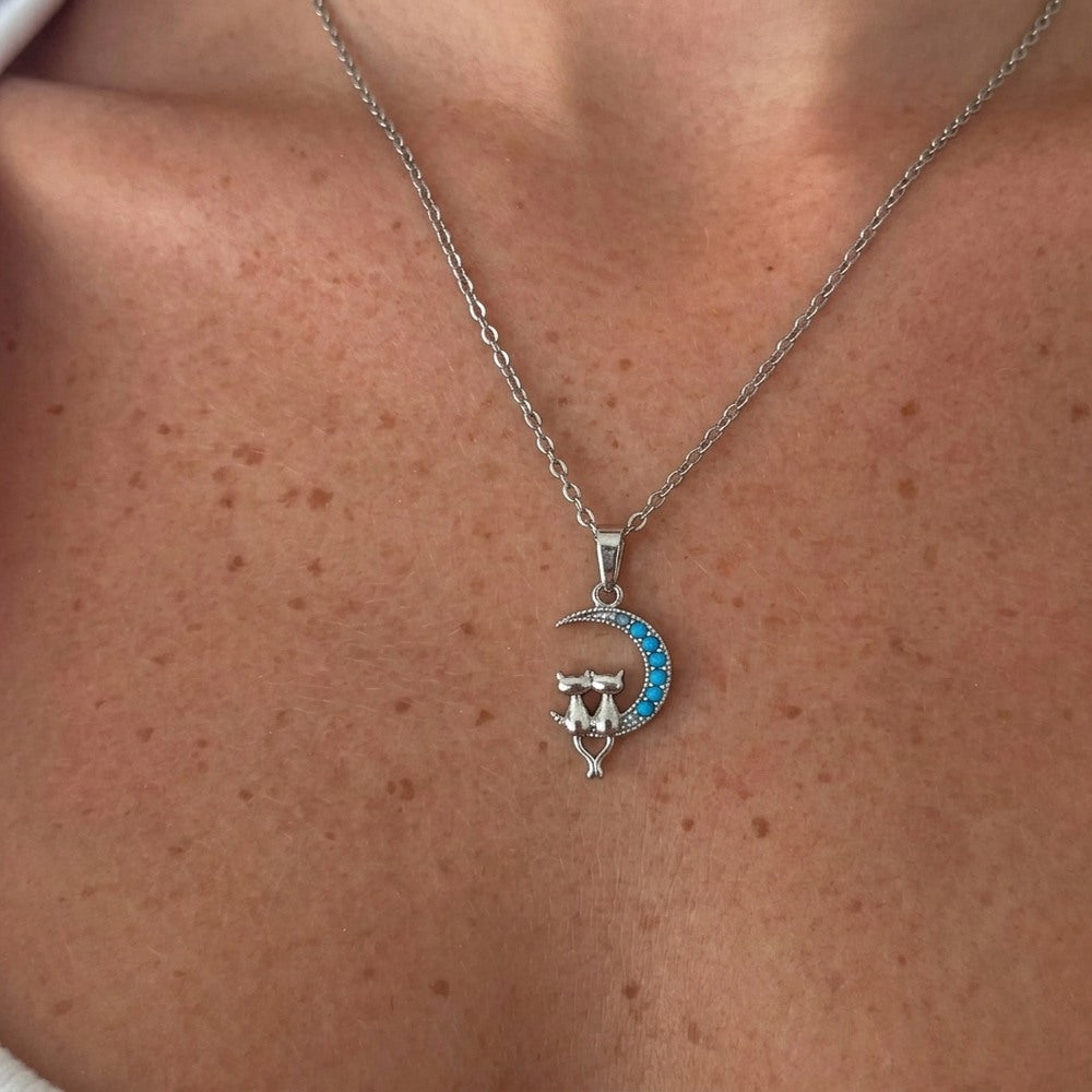 Kararmaz Minimal Çift Kedi Kolye