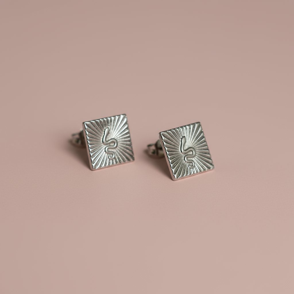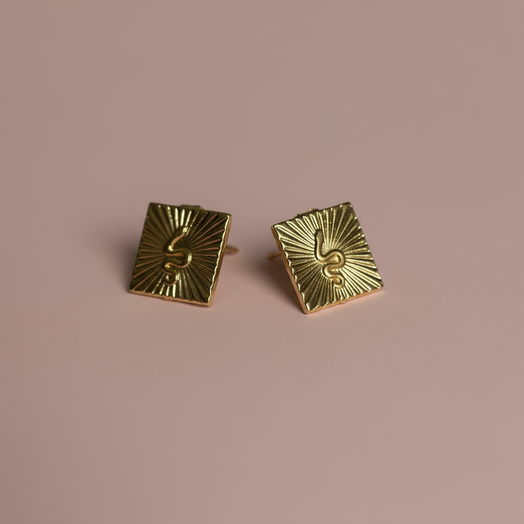 Cesur ve özgün bir tarz yaratmak isteyenler için tasarlanan Yılan Plaka Küpe, altın kaplama yüzeyi ve özenle işlenmiş yılan detaylarıyla hem günlük kullanıma hem de özel davetlerde dikkat çekici bir görünüm sunar. Minimalist ve modern tasarımı, stilinize sofistike ve dikkat çekici bir dokunuş ekler.