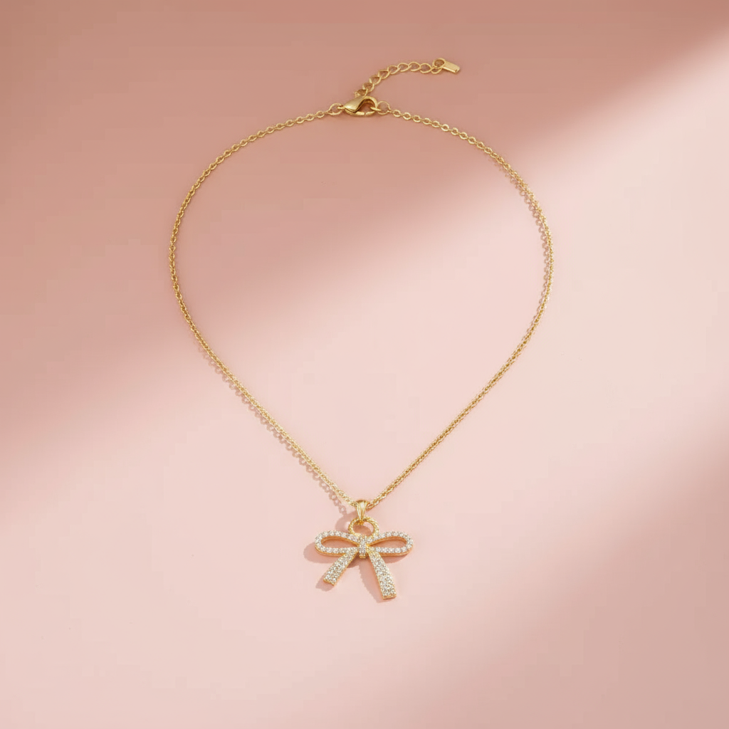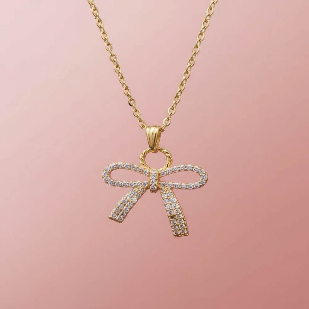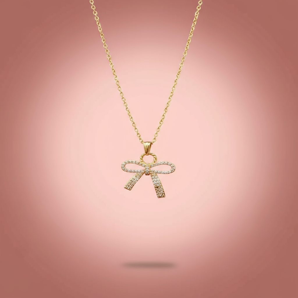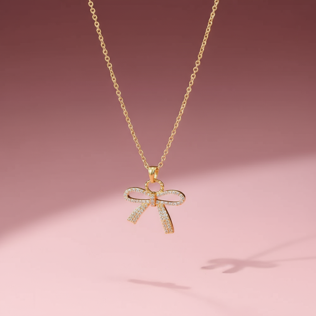 Çelik Zirkon Taşlı Altın Kaplama Fiyonk Kolye