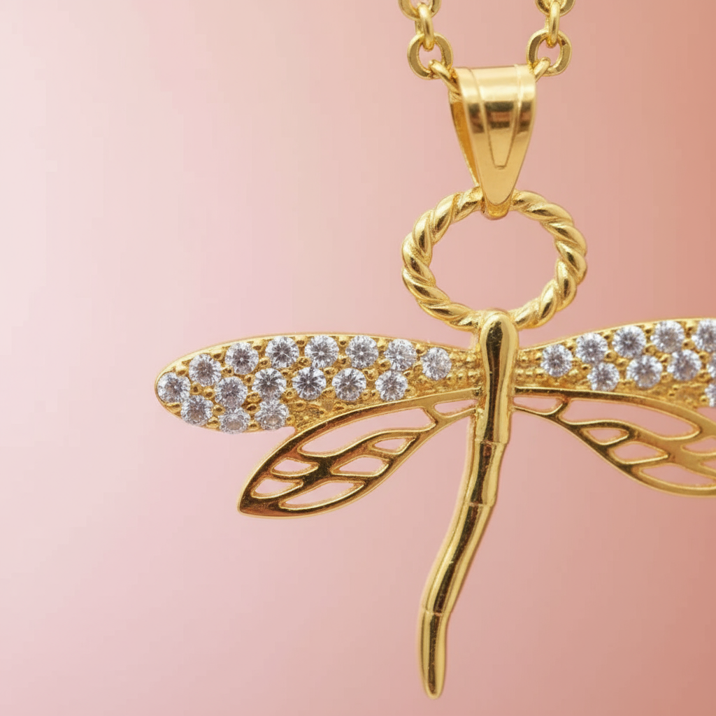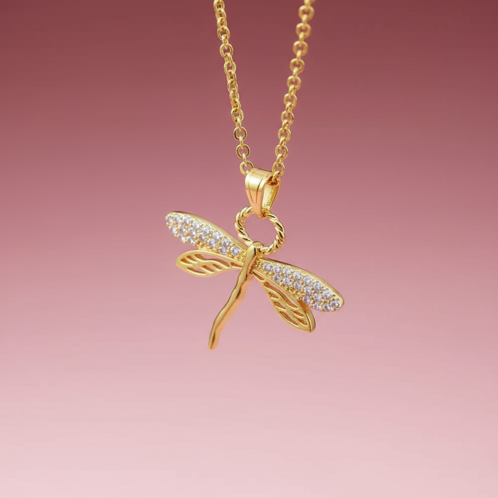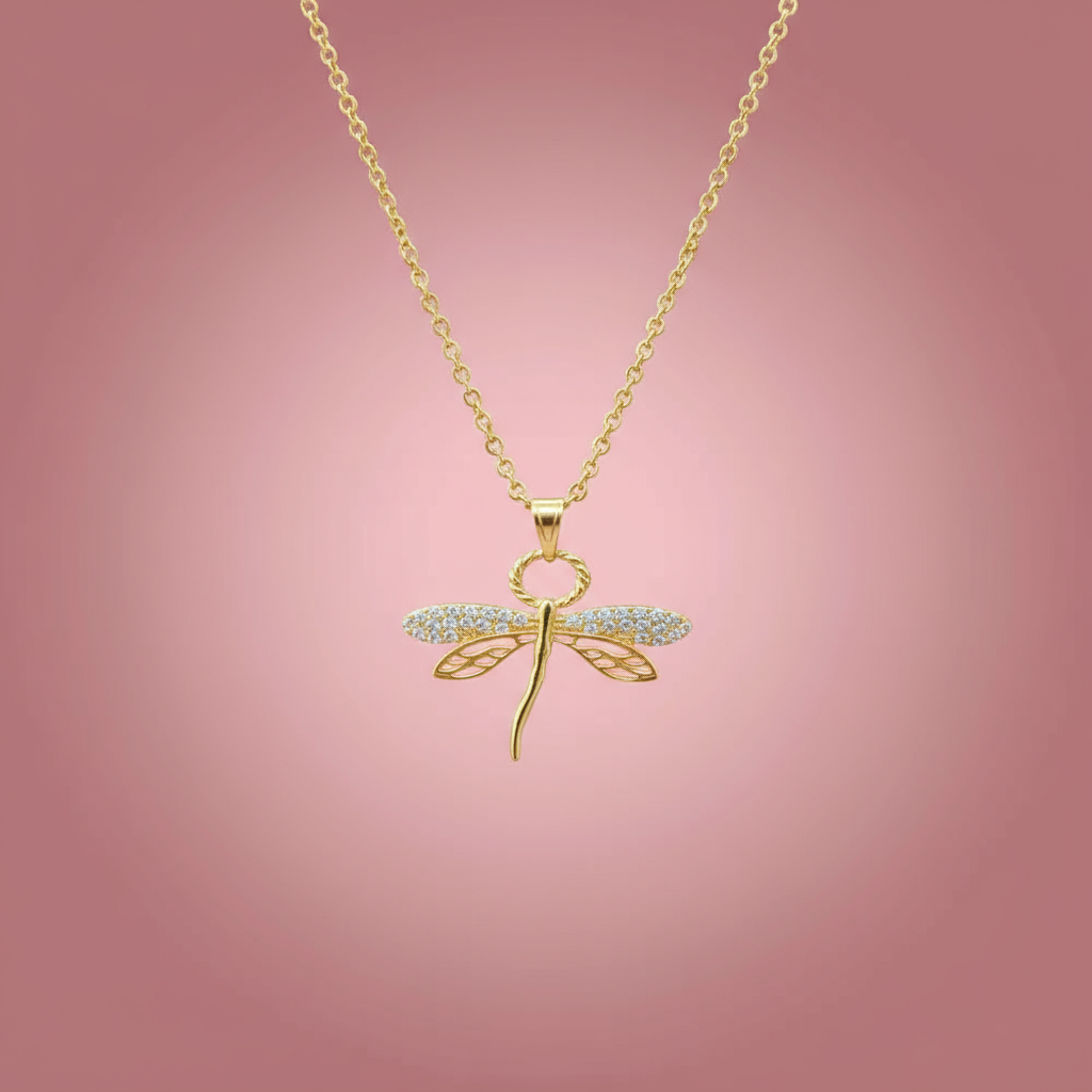 Zirkon Taşlı Altın Kaplama Yusufçuk Kolye – Zarafet ve Özgürlüğün Sembolü